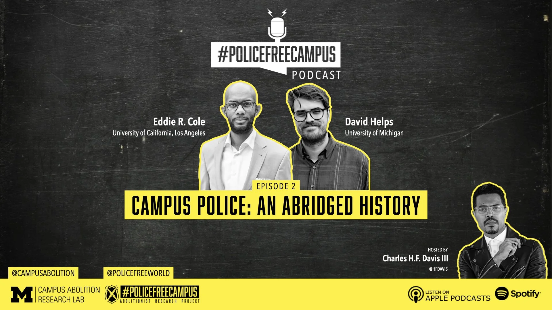 Dr. Eddie R. Cole and David Helps discuss the origins and evolution of campus policing and its historical implications for racialized surveillance, political suppression, and criminalization in colleges and universities.
